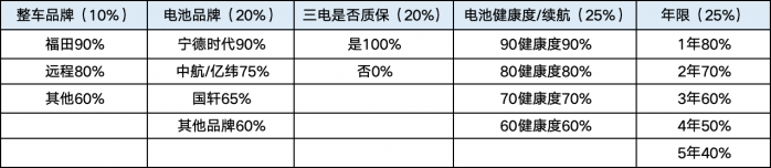 根据数据显示,在电动车的残值计算中,电池健康度与年限的权重占比最高,其次就是电池品牌,可见搭载宁德时代的含金量是有目共睹的。这里在加上整车品牌的权重,可以看出图雅诺精灵智蓝的残值表现遥遥领先。