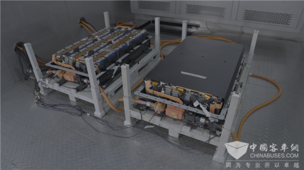 为确保电池PACK在长达15年的生命周期内结构稳固,宇通基于实车工况路谱采集数据,提取客车电池系统振动及冲击工况特征,研究电芯膨胀自适应模组、动态缓冲电连接、高强度箱体等技术,开发高模态、耐振动、耐冲击的电池PACK,并通过了严苛的结构可靠性验证。