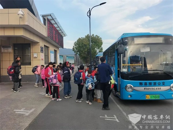 其中,安徽黄山黟县交通运输局与县交通全域公司携手,共同推出了以安凯G6为主力的“校园定制”儿童公交专线。该专线遵循固定线路、固定站点、定点定时运行的原则,为儿童提供从“家门到学校”的点对点专车接送定制化服务,护航儿童上下学的安全出行,有效打通了儿童友好出行的“最后一公里”。