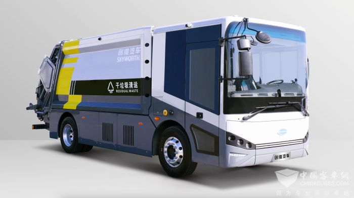 据悉,该车是来自开沃汽车的创维纯电动压缩式垃圾车,主要应用场景是在生活小区、路边等分散点收集垃圾,前端收集垃圾,压缩后再运输到中转站。
