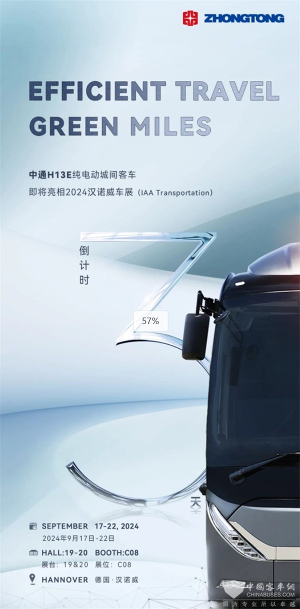 中通H13E纯电动城间车即将亮相2024德国汉诺威展