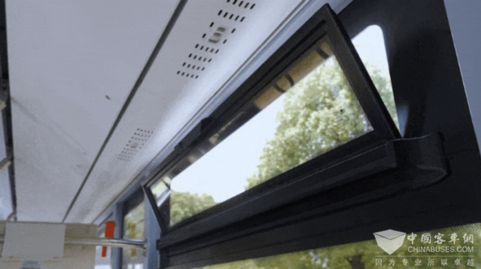车辆设有三个侧窗,顶部还带有内翻式车窗,用于通风,保证了车内空气的流通,提升了车内空间利用率。此外,车内配备壁挂不锈钢垃圾桶,方便乘客丢弃垃圾,保持车内环境整洁。