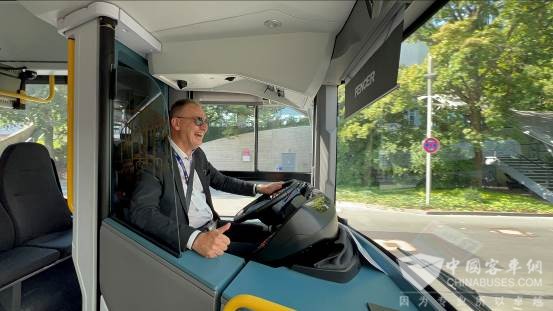 本次参与展会现场展示及试乘试驾的斯堪尼亚·海格Fencer F1 Integral EV是一款对标世界一流的高端纯电“明星产品”。无论从外观设计还是配置、性能上看,Fencer F1 Integral EV都是一款能够代表纯电动公交客车顶尖水平的产品。Fencer F1主要负责在展会期间接驳来自全球各地的媒体记者、参展商家和专业观众,高端精湛的制造工艺、舒适安静的乘坐体验,绿色可靠的的运营表现,受到了乘坐者的一致好评。一位德国客运公司CEO亲自试驾了Fencer F1,他在场馆内外试驾几圈后称赞道:“F1起步平稳、提速快、噪音低、空间紧凑,内外饰搭配非常完美!”有的观众在乘坐体验过后,在Fencer F1车前亲密合影留念。还有外国观众甚至拿着手机蹲下来拍摄,Fencer F1俨然成为“那条街上最靓的仔”。