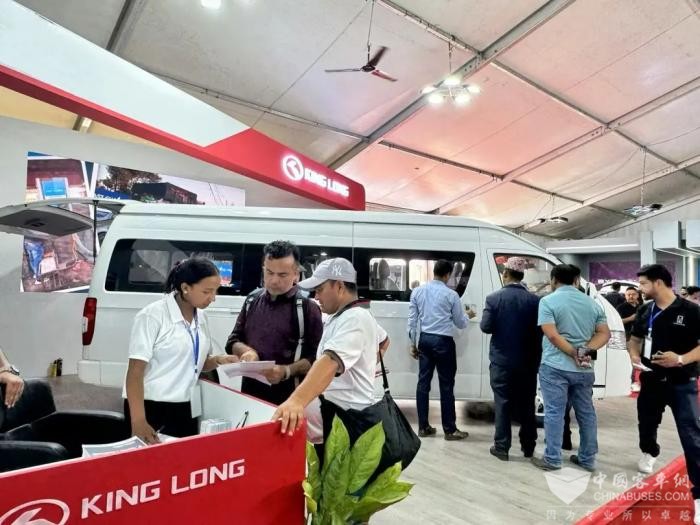 展会现场,金龙展区人头攒动,稳重大气的新能源车型吸引了众多展会观众,纷纷驻足。新能源车辆不仅能够有效地降低运营成本,还能显著减少碳排放,完美契合了尼泊尔政府推动绿色交通、积极应对环境挑战的宏伟愿景。