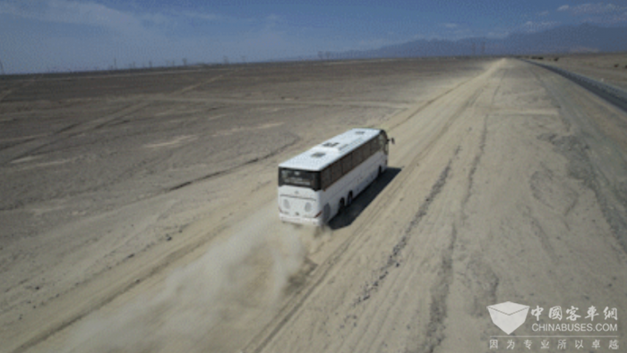 本次高温试验,试验团队依托“中交火焰山试验场”的试验道路设施,在性能直线路、扬尘路、砂砾路、城市广场路等试验道路上,反复进行了多次加速、急刹、转弯等测试,验证车身、底盘、轮胎,以及制动及车辆可靠性。经测试,在极端高温的情况下,安凯N8以卓越的性能表现,轻松穿梭于各种路况之间,尽显安全可靠、精工制造的产品品质。