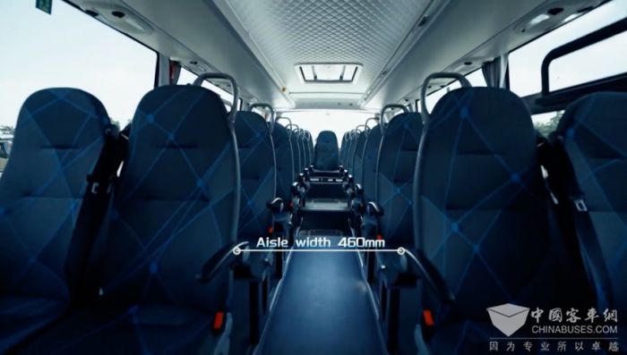 车内中央通道宽度达到460mm,行人可轻松通过。每个通道座椅上方都配有站立扶手,宽大顺手,增加了乘客的乘车安全性。
