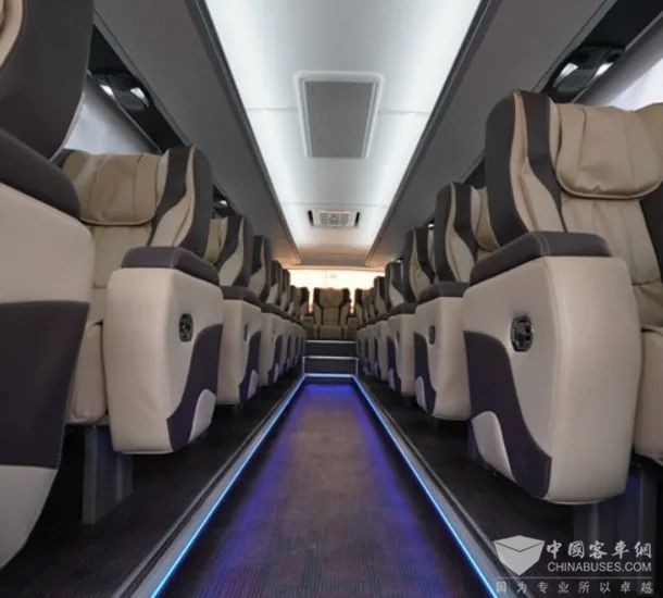 值得一提的是,两批中通H9高端旅游客车均配置了1+1、2+1的豪华商务座椅,座椅配备双扶手以及多项调节功能,舒适度更高。定制双层中空车窗玻璃,不仅具备极佳的隔热效果,而且隔音静谧性好,进一步提升了乘坐舒适性。