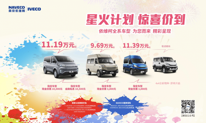 为了回馈用户热情,给予用户更高的价值体验,南京依维柯“星火计划”对旗下全系车型进行了大力度的价格调整,最大下调幅度高达3万元,同时指定车型可享受2年8万免息的金融方案,让车友购车更加轻松无忧。不仅如此,活动现场购买依维柯的用户还获得了1000元创富基金,可谓惊喜重重。