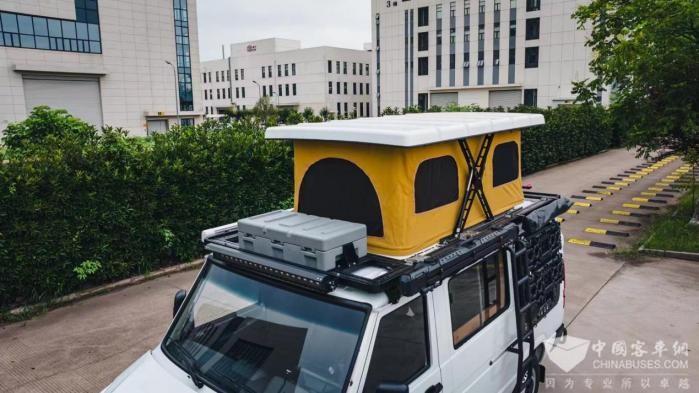 其次,得意宿营车还带有“战术箱”,用于存放行李,并且战术箱的边缘都设有防水密封条,能够保证物资的安全,可以理解将其为车顶的“行李箱”,方便存取宿营物资。