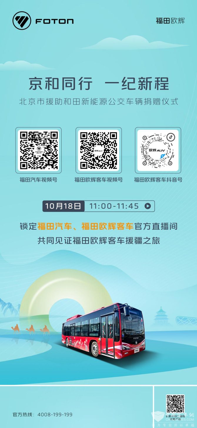 接力援疆路,再续京和情。2012年,北京为新疆和田捐赠60辆天然气公交车,此后福田欧辉便一直为和田绿色公共出行持续助力。一批批品质客车持续交付,成为连接北京与新疆人民深厚情谊的载体。此次活动将邀请多方群众参与,与民互动展现出福田欧辉援疆12年以来为当地交通带来的变化,更有第一批援疆功勋公交车现身活动现场,会带来哪些小惊喜?明天即将揭晓。