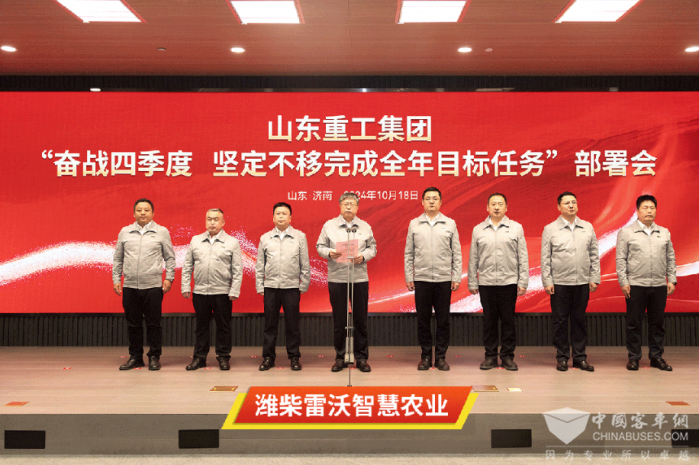 2024年10月18日,山东重工集团召开“奋战四季度 坚定不移完成全年目标任务”部署会,深入学习贯彻党的二十届三中全会和9月26日中央政治局会议精神,全面落实省委、省政府决策部署和省国资委三季度经济运行分析会要求,总结集团前三季度经济运行情况,分析当前面临的内外部形势,谋划四季度工作安排,推动各项工作再加力、再突破、再提效,奋战四季度,坚定不移完成全年各项目标任务。党委书记、董事长满慎刚出席会议并讲话。党委副书记、总经理王志坚通报集团前三季度运营情况和四季度目标任务,并与权属企业主要负责人签订经营目标责任状。党委副书记、董事叶建军主持会议。