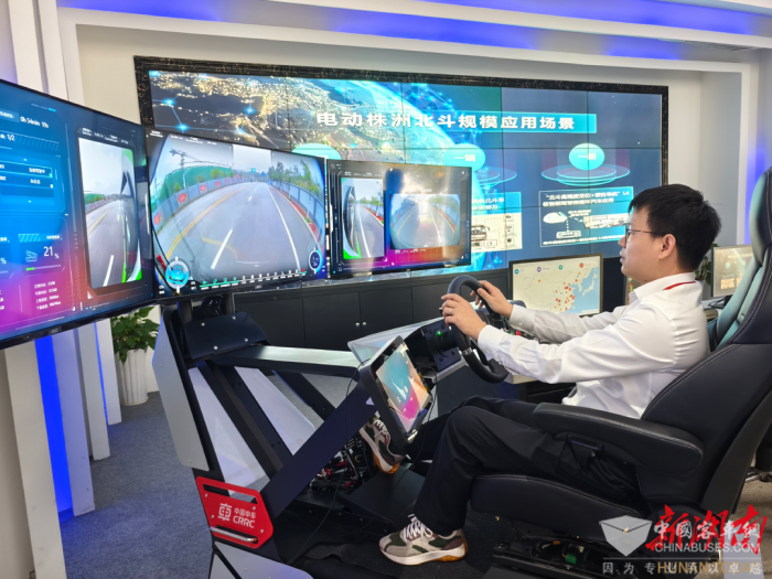 “搭载北斗系统,实现数据的精准采集和车辆的高精度定位。”中车电动长沙智驭产品研发部后端设计师李祥介绍,在公司的云智通大数据云视中心,车辆实时位置、电池温度、制动系统报警等数据都能随时查看。通过数据分析和下达指令,自动驾驶车辆能准确执行路线规划,远程驾驶的时差仅35毫秒。