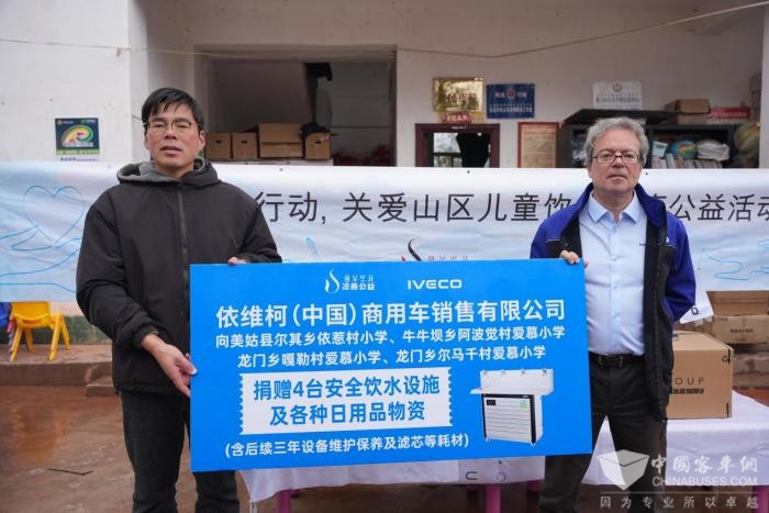 依维柯集团旗下商用车品牌依维柯再次在中国开展“‘依’起行动,关爱山区儿童饮水健康公益活动”,向四川省凉山彝族自治州美姑县4所山区小学捐赠了4台安全饮水设施和丰富的生活用品,以实际行动为偏远山区寄宿制学校的师生们的饮水安全和日常学习生活提供支持。