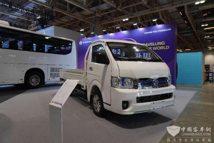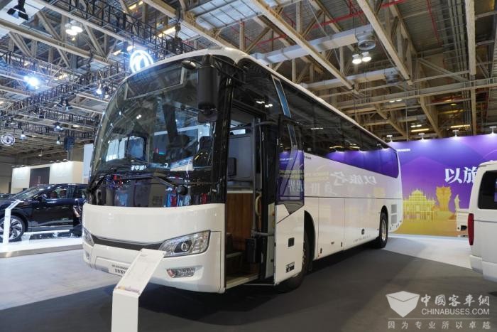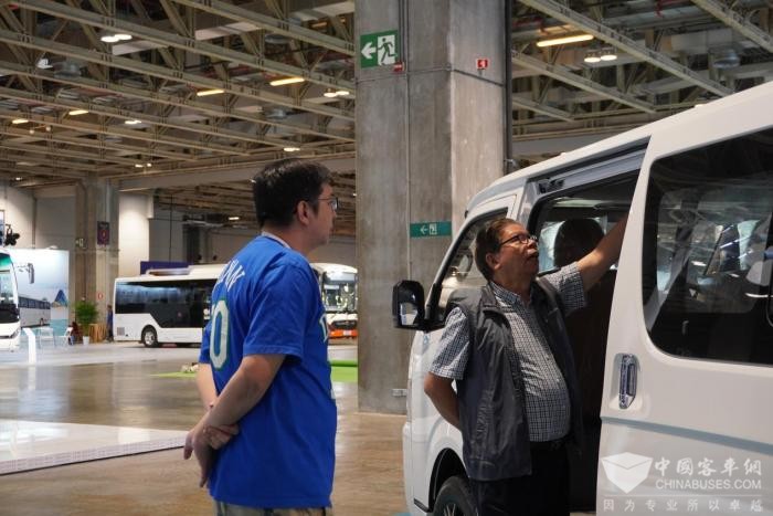 此外,金旅Z5窄体大海狮客运车以其流线型车身设计和时尚外观,成为轻客市场的新亮点。这款自主研发的轻客产品不仅在空间上有所突破,同比老款轻客产品空间大出1立方米,本次展车装备了全新的电动门,结合了大海狮的商务性和小海狮的实用性,为市场提供了更加灵活和舒适的选择。
