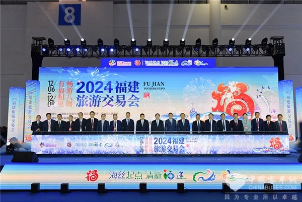 2024年12月6日,由福建省文化和旅游厅、福州市人民政府指导,福建省旅游发展集团主办,各地市文化和旅游局协办,福建福旅文化传媒集团有限公司承办的2024 福建旅游交易会在福州海峡国际会展中心盛大启幕,厦门金龙联合汽车工业有限公司(以下简称“金龙”)携全球首款全轮转向豪华公路客车Merry Combo陆地航母及C型房车亮相展会。