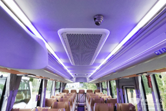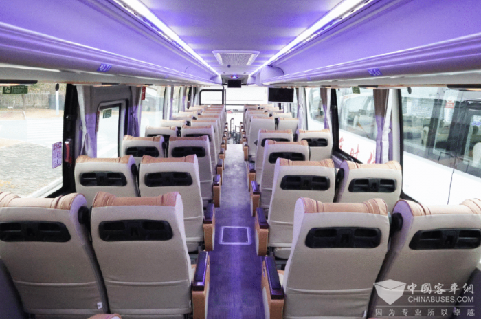 车内照明采用了双长条LED内顶灯,搭配踏步灯,为乘客提供了明亮而温馨的乘车环境。座椅方面,乘客座椅均配备了三点式卷收自锁安全带及未系提醒装置,确保乘客的安全。贯通式行李舱和内部行李架,为乘客提供更多空间存放货物及行李。
