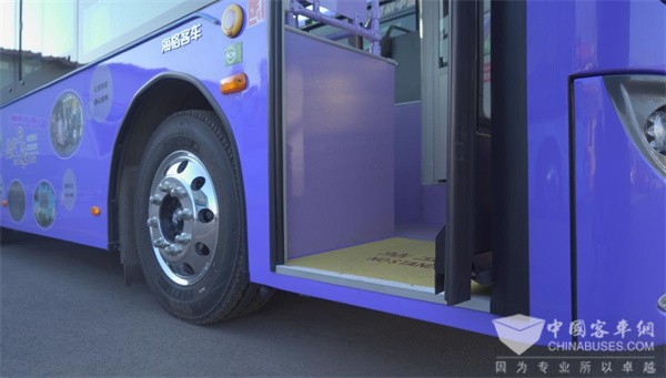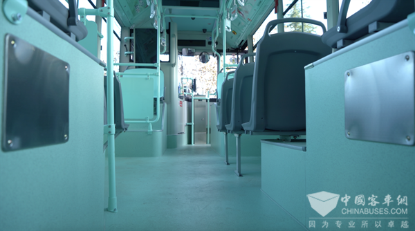 此次投运的90台苏州金龙蔚蓝第六代纯电公交车长8.5米,车辆因采用轮边驱动技术,成就车辆全平地板,一级踏步高度只有360毫米,适老化设计暖人心、便人行。车内还设有USB手机充电接口,在车内随时随地可以为手机充电。此外,每辆蔚蓝公交车内外都装饰有彩色氛围灯,提升了乘客乘坐体验。
