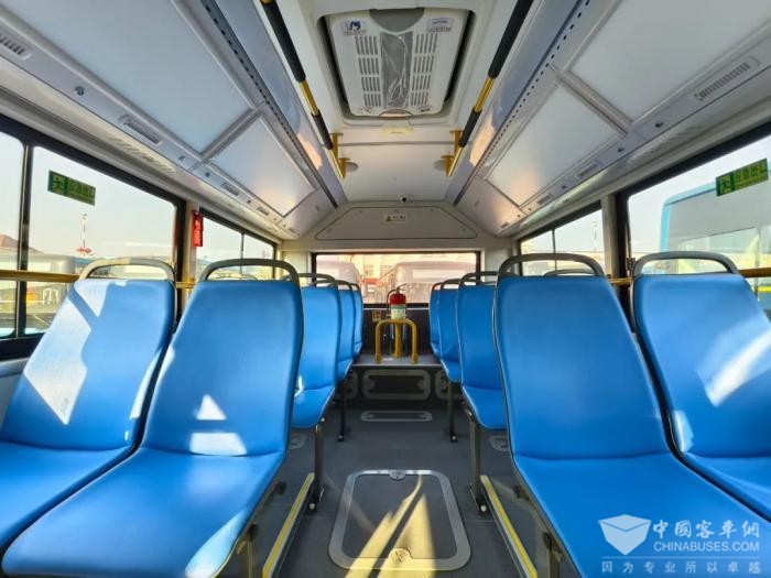 在辽阳市公汽公司停车场,186台中车“鲸典”纯电公交车整齐摆放,其分为8.5米和10.5米两种车型。蓝色涂装的车身简洁明快,两台定制婚车的涂装喜气洋洋。车内,橙蓝两色的座椅、搭配黄色的扶手,再加上360全景影像、电子后视镜、LCD站节屏、一级踏步低入口设计等,让科技与人性化并存。