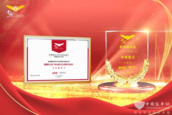 2025年1月8日,“第十九届影响客车业年度盘点,新质生产力创新发展论坛暨公交客车科技交流”活动在河南郑州举行,行业专家、学会代表、公交客运、客车配套企业代表等齐聚一堂,回顾总结2024年的成绩与不易,展望规划充满期待的2025年。苏州金龙V12、V11E两款新V系车型分别荣获2024-2025年度“高端商务客车之星”和“轻量化客车之星”两项大奖。