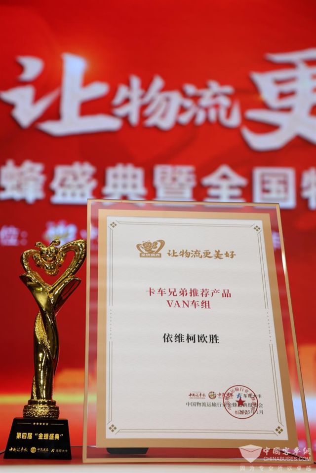 本次盛典秉持“让物流更美好”的核心精神,聚焦物流行业从业者的实际需求与切身体验,以车友们的视角甄选出了他们所信赖认可的产品和品牌。凭借在公益方面身体力行的坚持和担当,南京依维柯荣膺“卡车兄弟推荐公益品牌”奖;旗下明星产品依维柯欧胜,则以其可靠性能和出色口碑在众多产品拔得头筹,喜获VAN车组“卡车兄弟推荐产品”奖。双喜临门,实力印证行业与用户的双重青睐。