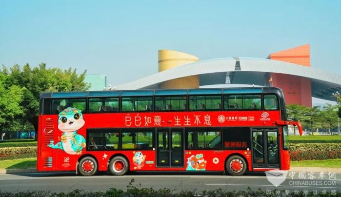 在临近除夕的喜庆氛围中,深圳福田花市迎来了一位特别的“新春使者”——创维双层巴士。这辆巴士以其独特的造型和央视春晚吉祥物“巳升升”的装饰,迅速吸引了众多市民的目光,为新春佳节增添了浓厚的喜庆气氛。