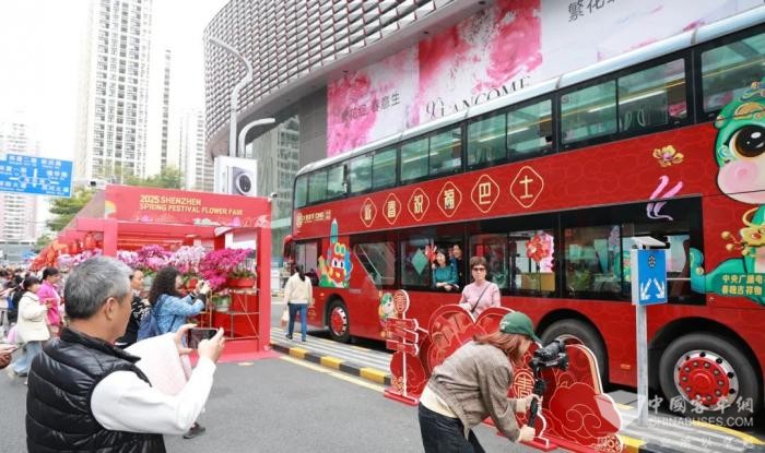 创维双层巴士亮相深圳福田花市,春晚吉祥物“巳升升” 添彩新春
