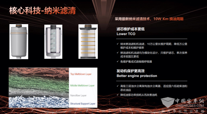 在油耗表现上,康明斯发动机同样表现出色。搭载康明斯发动机新一代A系列发动机,基于FFA设计理念和客车工况,采用全新HOLSET N7涡轮增压系统、双流道双旁通技术,提升瞬态响应,降低油耗;Alder Shot轴封,提升封油能力;采用全新纳米滤清技术,降低油泵功率损耗从而改善油耗。