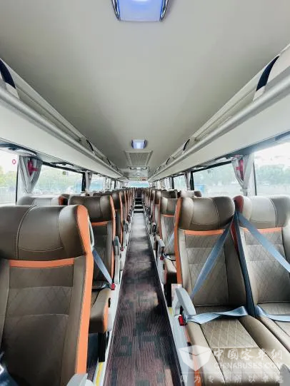 同时,BJ6906配置多功能方向盘,搭载iTink智能车联网系统,多彩智能仪表盘,带来出色的驾驶体验。乘客区采用2+1座椅布置,车内座椅间距较宽,配备高端大商务座椅、usb/type-C两种手机充电接口、动车窗帘、组合氛围灯等,带来头等舱级的超强舒适性体验,满足旅客高品质出行的需求。同时,BJ6906可选ABS、ESC、胎压监测及报警、乘客佩戴安全带提醒等多重主动安全配置,可以为乘客提供全方位保障,助力旅游客运企业提升服务品质。