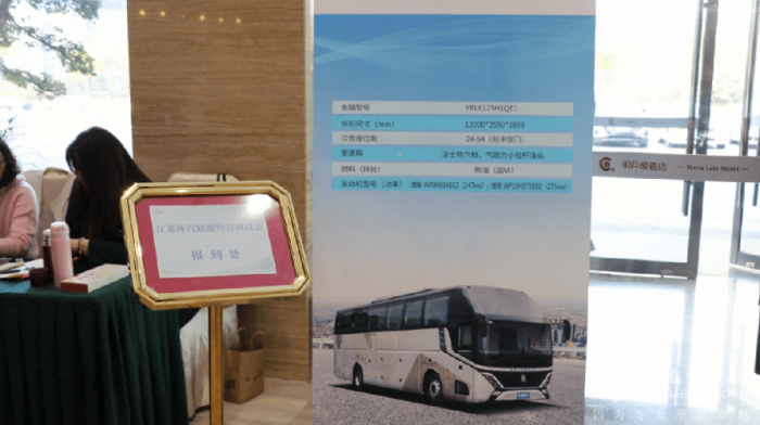 研讨会首日,参会嘉宾陆续来到明月湖酒店1楼大厅签到。签到处为大家准备了精心制作的资料袋,里面有精美的宣传图册和纪念品,帮助大家更深入了解亚星客车的发展历程与产品优势。