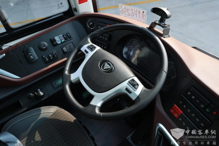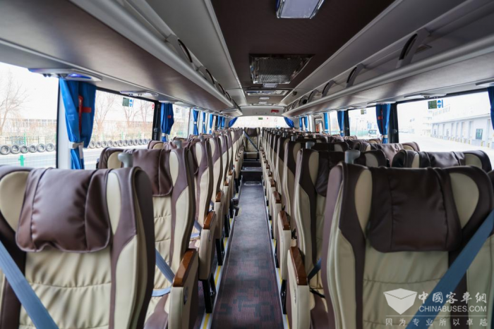 在驾驶区, BJ6122采用柔性包围一体式安全驾驶舱,全暗藏式安装接口,创新性融入导游靠背,可有效减少驾驶员驾驶疲劳。此外,BJ6122搭载了智能车载管理系统,可实时针对各种路况、载重、行车状态等动态调节动力输出,最大限度提升燃油经济性,降低运营成本。