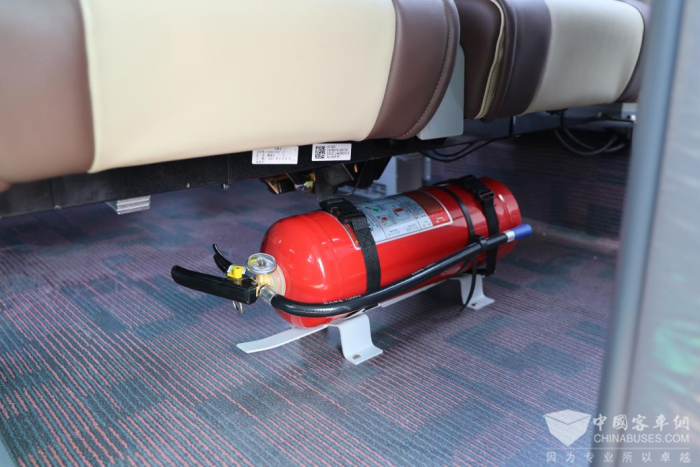在安全性方面,BJ6122采用全承载车身结构,可选装车道偏离预警、胎压监测及报警、360环视系统等功能,为乘客提供全方位的安全保障。同时,车辆在乘客座椅下方还配备了干粉灭火器,进一步提升车辆安全性。