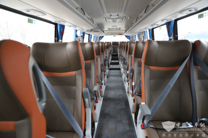 BJ6116外观沉稳大气,内饰舒适雅致,采用全承载车身和4D防护技术,全方位保障乘客安全。车辆内饰采用环保材料,设计豪华时尚,配备高密度海绵座椅、LED液晶屏、智能温控空调等配置,营造出温馨舒适的乘车环境。同时可选配LED长条灯、车内氛围灯、豪华行李架等设施,营造出舒适的乘坐环境。此外,BJ6116还可配备智能温控空调、Wi-Fi及充电接口等人性化设施,极大提升了旅客的出行体验。
