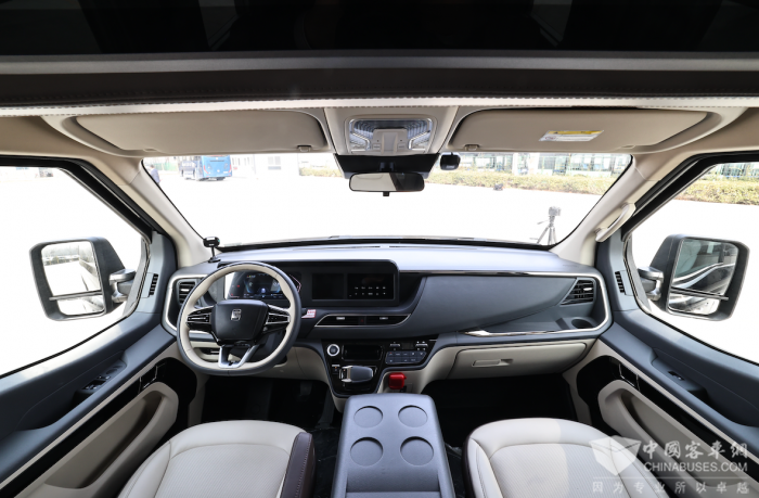 走进领航员M5的驾驶区,各种乘用车式的配置让人眼前一亮。