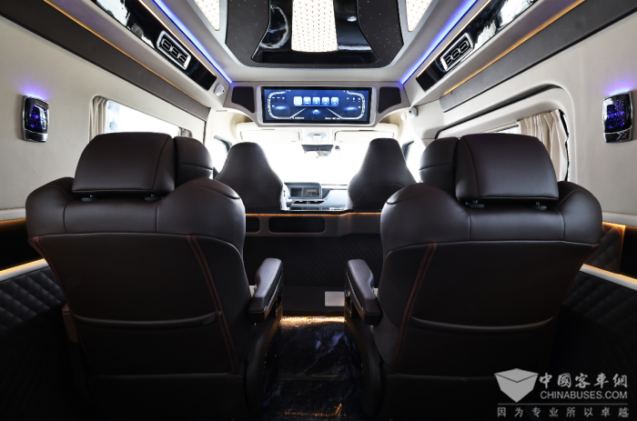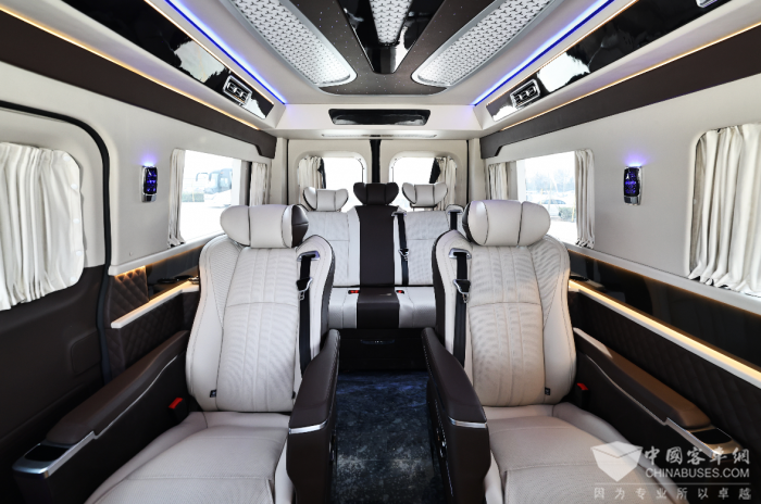 而在商务接待场景中,车内大面积的软性皮质包裹、全景星空顶等高档配置,营造出奢华舒适的氛围,将定制化设计理念完美体现,为乘客打造出极致的移动商务空间解决方案,真正做到了颜值与实用的完美融合。
