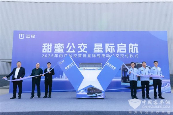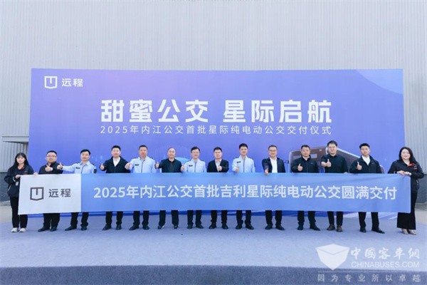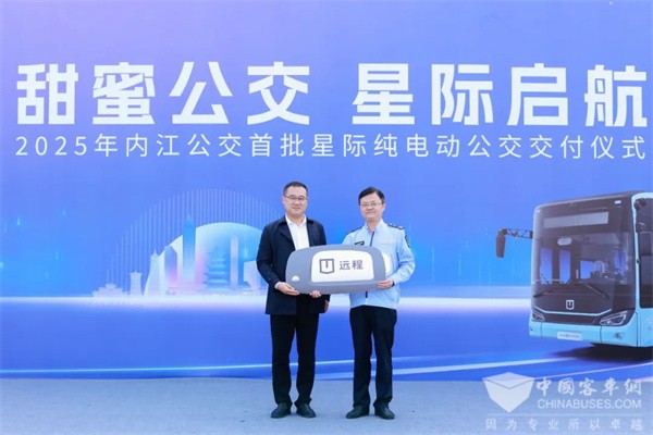 2025年4月8日,54台远程星际纯电动客车C10E正式交付四川内江市公交集团,并于南充智造基地举办交付仪式。加上此前交付的72台纯电动客车,将有126台远程星际客车助力内江公共交通体系可持续发展。从C8E到C10E的连续交付,体现了内江市公交集团对远程星际客车产品的深度认可。