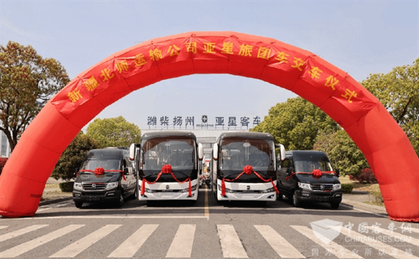 烟花三月的扬州春光明媚,亚星客车广场上却洋溢着浓郁的西北风情——在新疆舞者翩跹的彩裙间,北屯领导亲手接过象征合作的“金钥匙”。亚星客车蓝钻 2.0 系列YBL6129H1QE 旅游客车正式交付于北屯北师运输有限责任公司。这批专为“千里画廊”阿勒泰定制的YBL6129H1QE车型,正从运河之畔启程,奔赴4000公里外的雪山草原。