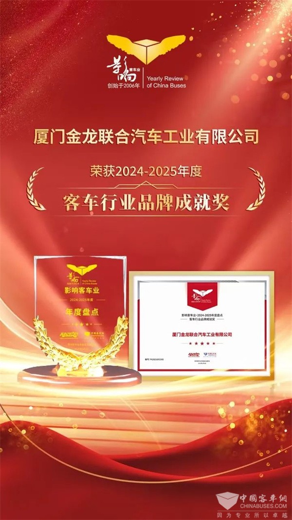 在“第19届影响客车业年度”评选中,金龙成功斩获“客车行业品牌成就奖”“客车技术创新应用成果奖”“高端商务客车之星”三项大奖。“客车行业品牌成就奖”是对金龙多年来在客车行业品牌建设、市场影响力等方面的高度肯定,“客车技术创新应用成果奖”彰显了金龙在技术研发与创新应用上的突出贡献;“高端商务客车之星”则突出了金龙高端商务客车在品质、性能等方面的卓越表现。