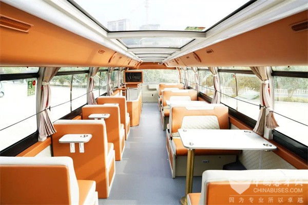 穿行于此的安凯双层观光巴士车身设计别具匠心,配色明快鲜活,线条圆润流畅,巧妙地将建水的知名景点串联起来,乘客们登临其上,仿佛穿梭在一幅幅立体的流动画卷之中。整车内部设计充分考虑了乘客的乘坐体验,配备了软包座椅、空调、雨伞、冰箱、电视、USB插孔等,并提供茶水、咖啡,车行景移间细品车窗外建水古城的烟火气。