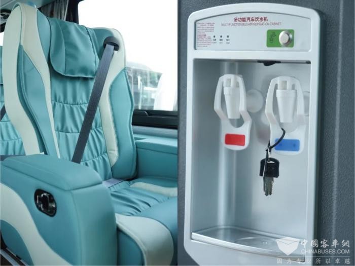 值得一提的是,此次交付的BJ6112城间客车还包含1+1豪华大商务车型,座椅采用1+1布局,配备豪华大商务座椅,空间更加宽敞舒适。车辆前部和中部装有LED液晶屏电视,可欣赏各类娱乐节目,让旅客旅途中尽享惬意。同时,车辆配备快充充电口和饮水机,旅客可随时为电子设备充电,畅饮解渴,确保长途旅行更加便捷舒心。