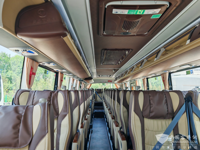 BJ6122采用现代美学外观,造型典雅流畅,行驶在路上自成一道亮丽风景线。内饰方面,车辆在驾驶区采用了全新开发的豪华全包驾驶区、乘客区采用2+2座椅布局,搭配符合人体工学的双密度海绵坐垫,多种复合材料填充靠背及头枕,为乘客提供极致的舒适体验。此外,车内还配置了仿生学内凹式行李架、多种氛围灯和数字化智能座舱,营造出温馨愉悦的旅途氛围。