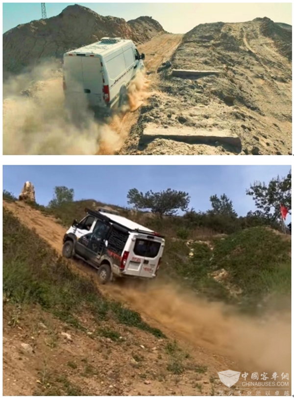 反观依维柯欧霸・山海、欧霸·雷霆,强大的动力输出,为车辆攀爬陡坡提供了坚实保障,稳步向上行驶。在全时四驱三把锁的作用下,即便部分车轮因砂石松动而附着力降低,其他车轮也能获得足够动力,确保车辆持续前进,极大程度避免了溜车打滑。同时,它还有着专业的非承载式越野底盘系统,车子不易变形,为精准操控提供了坚实的基础。