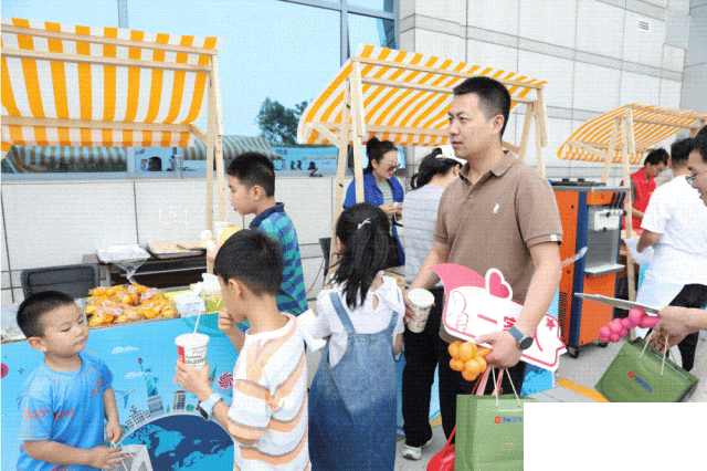 在“微集市”里,孩子们品味着中通特色美食,美味与陪伴的幸福,弥漫着整个厂区……