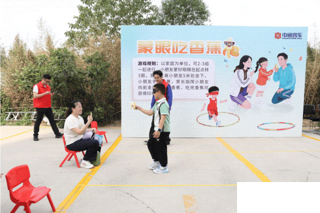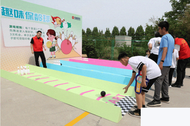 在“两人三足”游戏区,家庭协力,快乐前行,欢声笑语弥漫其中;