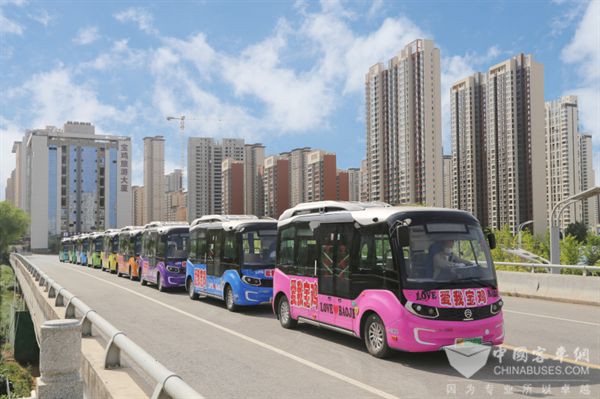 在陕西省宝鸡市,一辆辆绘有“爱我宝鸡”的迷你主题公交车往返于街头巷尾,服务市民、游客出行。它们环保时尚、小巧灵活、萌趣十足,采用“一车一色”设计,成为城市流动的靓丽风景线;它们开进社区、接驳高铁、直达景区,串联起居民区、商圈、景点及铁路站点,带来绿色、便捷、高效全新出行体验;它们小身体蕴含大能量,成为创新公交服务、拓展多元业务的好帮手,助力公交企业降本增效……这批6米金旅星辰纯电动公交车凭借呆萌身形与灵活特性,在多元场景中精准发力,为宝鸡公交高质量发展注入动能。