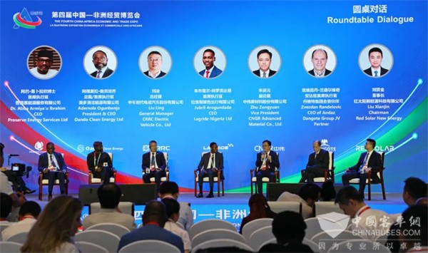 在中非企业家(CEO)对话活动中,中车电动总经理刘凌与中非多家企事业单位负责人一起,围绕创新与可持续性,探讨中非在绿色能源与金融创新领域的合作。期间,刘凌向非洲同胞介绍了结合非洲资源优势打造的中车“风光储能车”的新能源整体解决方案,为非洲新能源绿色交通持续赋能。