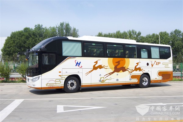 本次交付的车辆外观美观大气,车身线条流畅,侧围采用“奔鹿”图案,车内采用高端双拼色内饰顶,乘客区配备带电动腿托的半卧式高密度海绵座椅,驾驶区采用全封闭驾驶舱,短柄仪表台搭配多功能自适应司机座椅、智能车载管理系统与导航、车辆安全管理等多种服务功能,驾乘体验感十足。