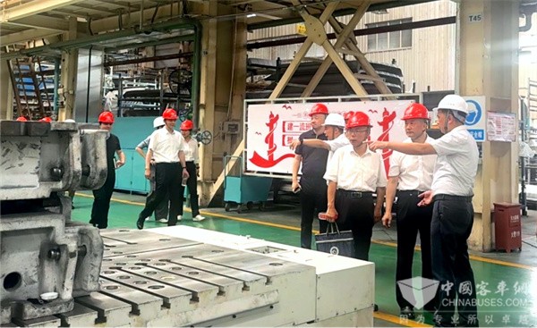 在金龙汽车智能公司,黄循铀一行参观了金龙汽车智能公司生产车间,实地察看了企业车身制造、精密结构件、智能装备、模具制造等产品的生产流程和工艺技术,了解企业生产经营、产品创新、安全生产及支部党的建设等情况。