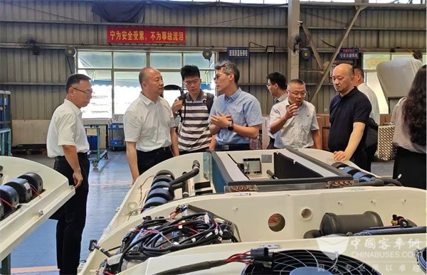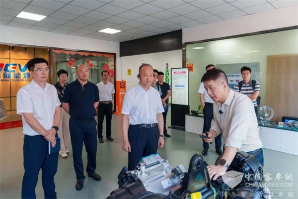 在金龙新能源公司,调研组一行实地察看了金龙新能源电机试验台架、DV设计实验和硬件在环试验室、产品展厅、售后培训和维修区、电池和电控生产车间以及新基地的建设规划。
