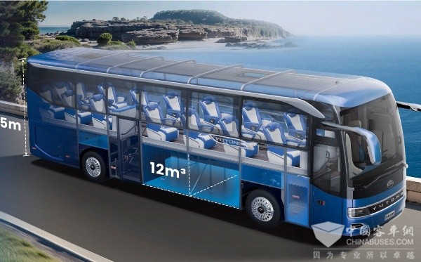空间是载体,天域S12以极致奢享空间,打造中国客车新高度。S12车身高度做到了3.815米,乘客区内达到了行业最高的2.14米,搭配18.4平方米的全景车窗,行走坐卧,犹如置身天地之间;12立方米装载空间,预留行业最宽750毫米驾驶员休息舱,长线运营出行无忧。
