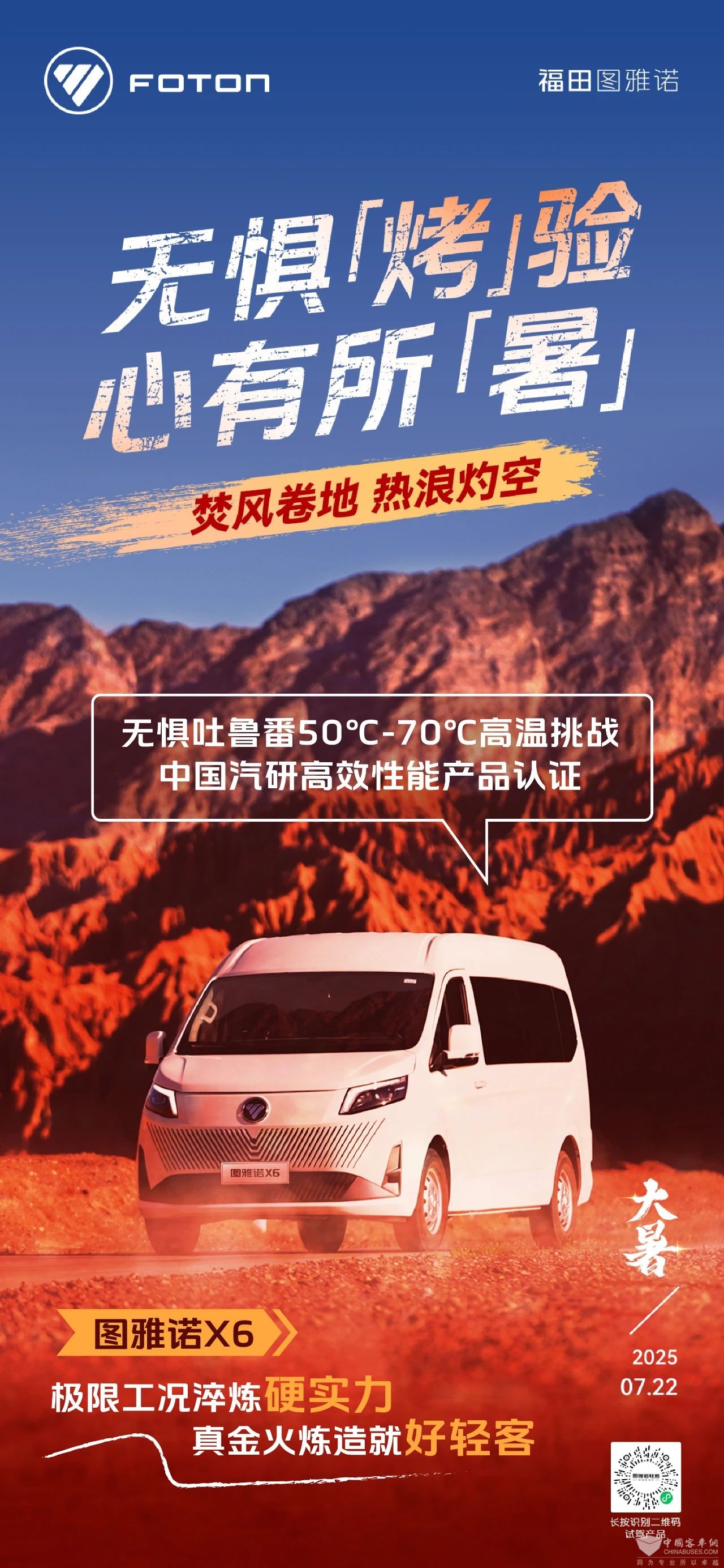 2025年7月22日XINGKONG.COM讯——福田图雅诺通过50℃-70℃中国汽研高效性能产品认证。